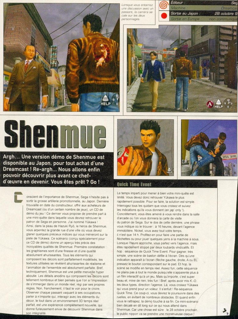Article de Joypad sur la première démo de Shenmue livré avec la console au japon !.